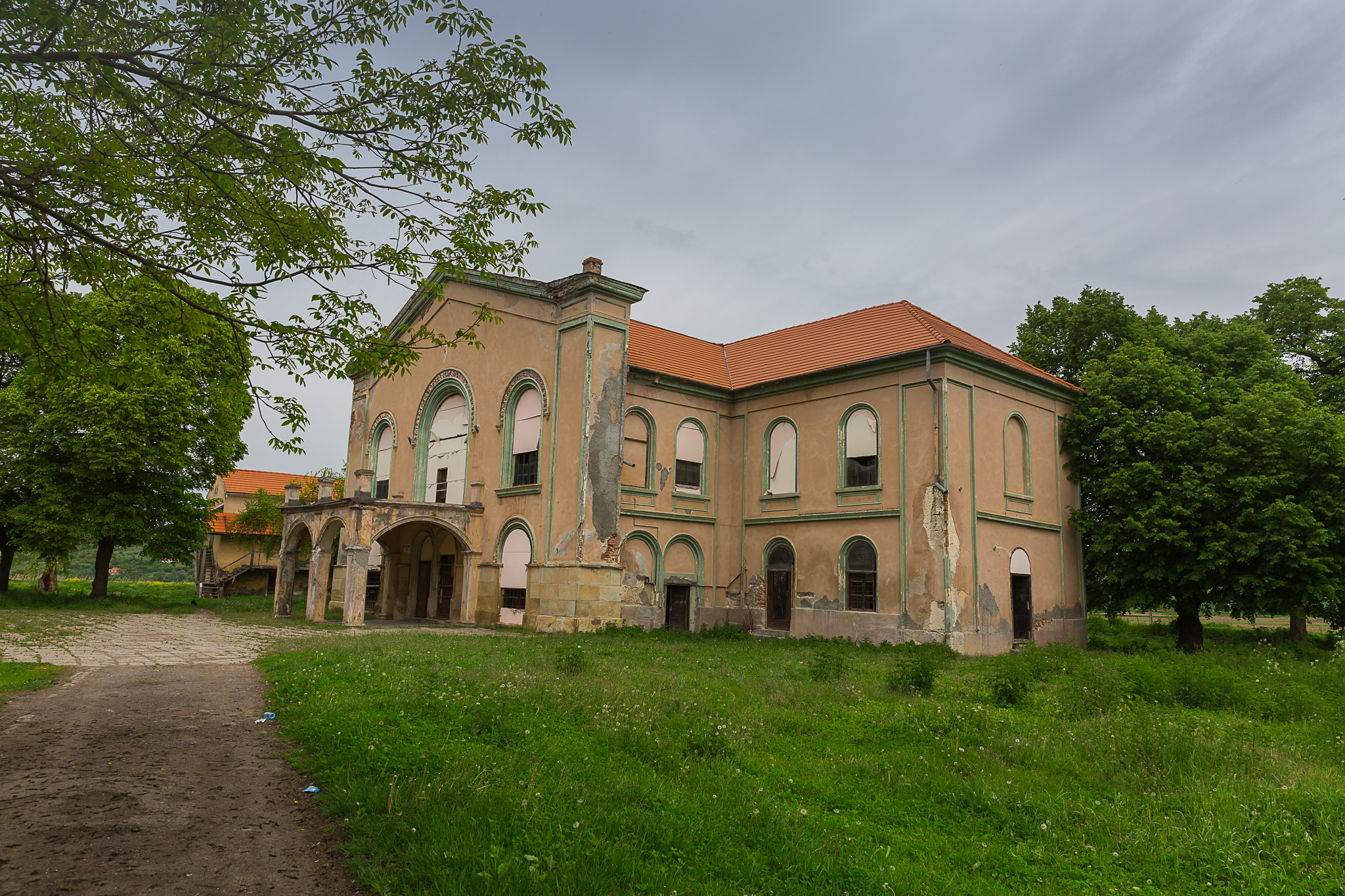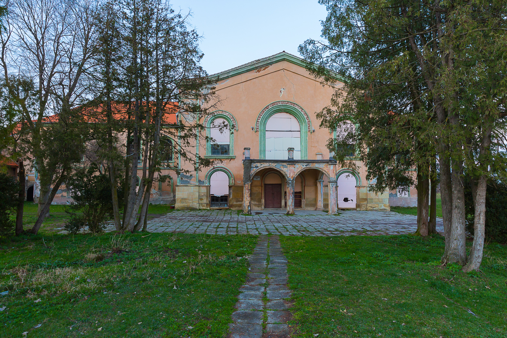 Planul castelului este în formă dreptunghiulară alungită la care este alipit un rezalit central, precum şi un turn la colţul nordvestic continuat într-o aripă mai nouă a clădirii. Aspectul stilistic exterior al clădirii combină elementele romantismului, cu lucrări de tâmplărie goticizante şi neorenascentiste. Faţada principală a castelului este dominată de cele trei axe ieşite într-un rezalit central, încununat cu un fronton triunghiular. Cele trei axe cuprind ferestrele de la etaj şi uşa largă de la balconul central, precum şi intrările de la parter şi câteva ferestre, toate cu închidere semicirculară. Articularea orizontală este accentuată de balconul din axa principală care este susţinută de arcade în segment de cerc. Deschiderile nivelului inferior se contopesc cu soclul, pe care se sprijină chenarul semicircular al ferestrelor. Merită o atenţie specială tâmplăriile goticizante ale uşii balconului, decorate cu o rozetă şi muluri. Faţada este încadrată pe cele două părţi de lesene care pornesc din soclu. Marginile rezalitului ies în evidenţă, dând astfel un aspect de culisă faţadei principale. Faţada posterioară a castelului este străpunsă de ferestrele cu închidere semicirculară a încăperilor reprezentative ale castelului. Faţada principală a pavilionului este cea sudică, fiind prevăzută cu un fronton cu timpan. În timpan se găseşte un ornament circular, înconjurat de ghirlande.