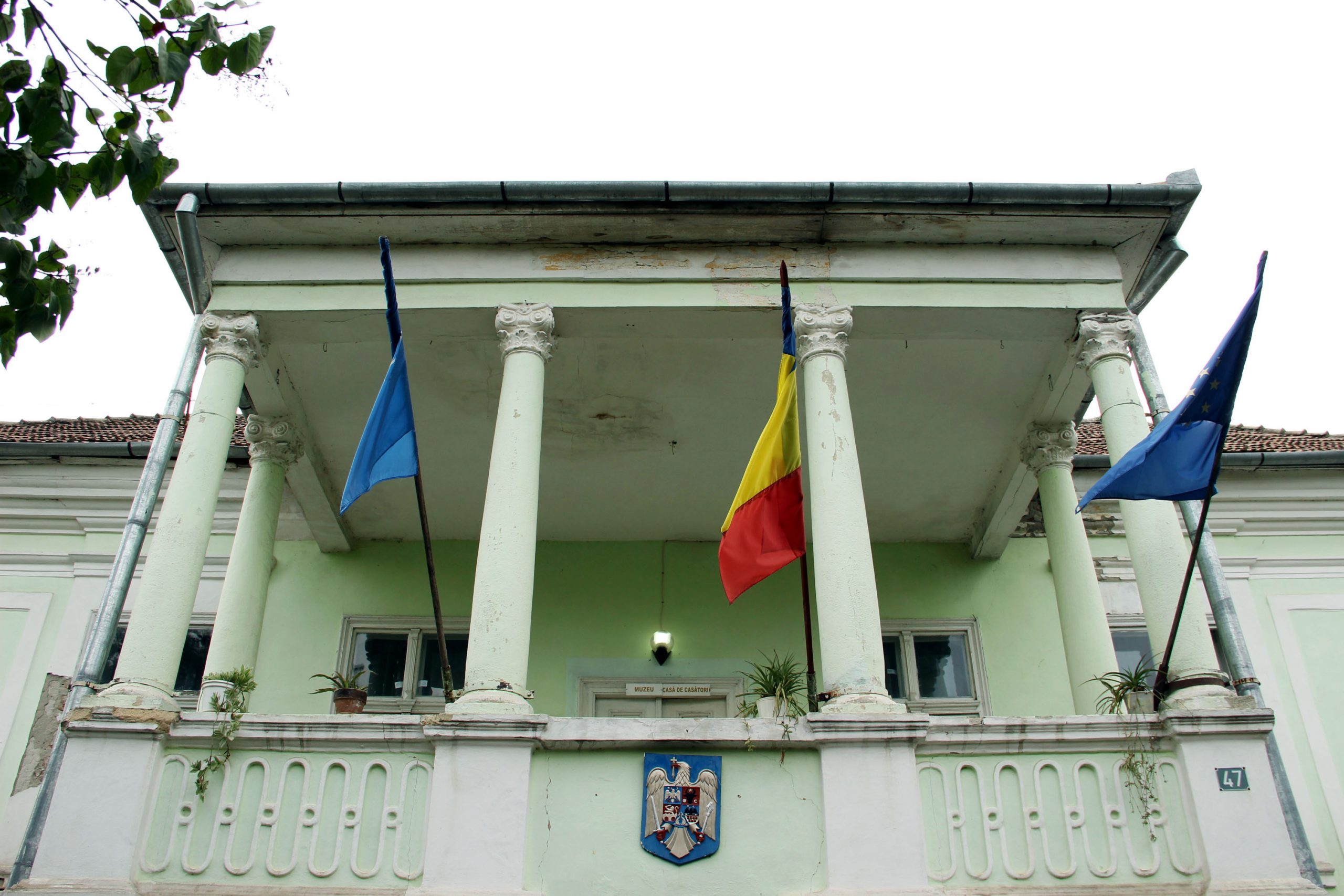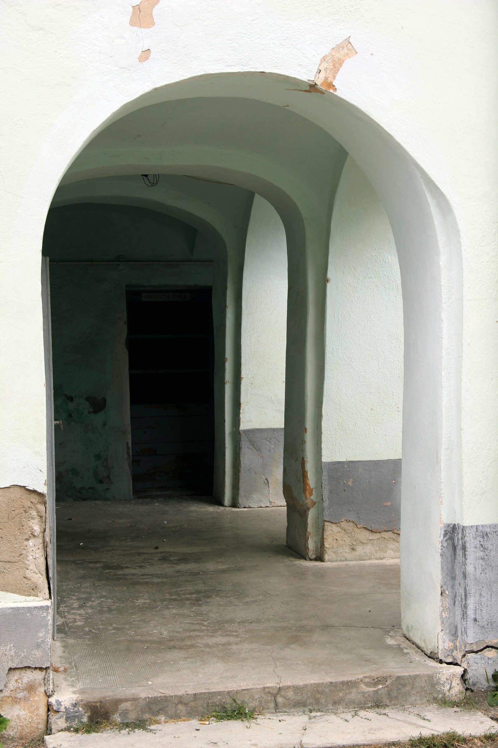 Fațada principală are un aspect simetric, porticul fiind situat în axa centrală a clădirii cu nouă axe, inițial fiind prevăzut și cu un mic turnuleț, care exista încă între cele două Războaie Mondiale, însă cam în această perioadă s-a efectuat schimbarea porticului. Coloana din șase compozite și intrarea principală se accesa prin cele două scări laterale, care inițial au fost decorate cu câte 3-3 urne din piatră, din acestea păstrându-se doar câte 2-2, dintre cele superioare, doar piedestalul acestora.