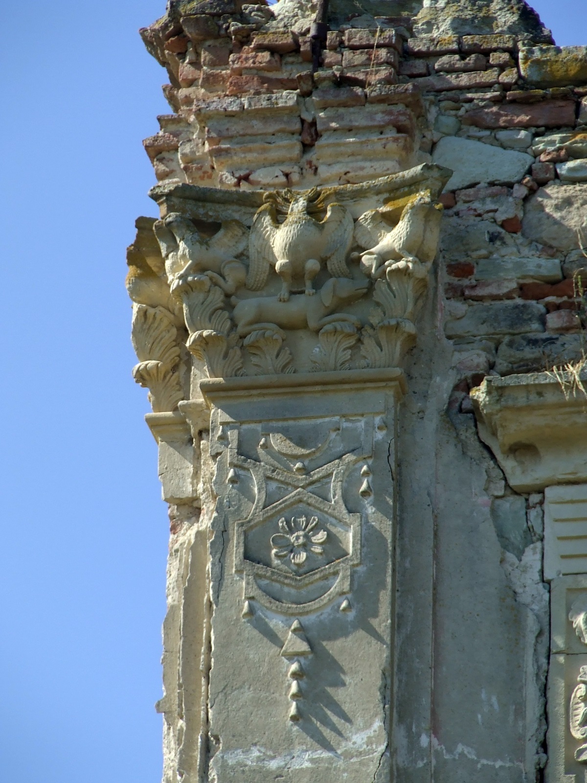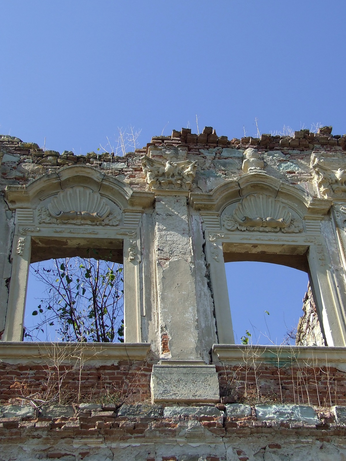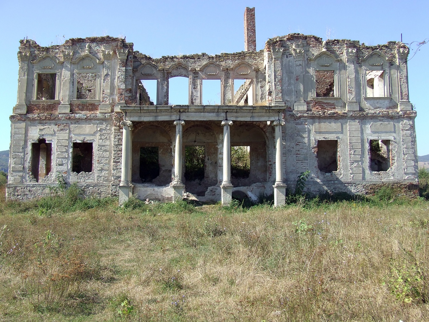 Ruinele de azi al clădirii baroce, cu plan de bază în formă de U, a fost ridicată de către Haller Gábor în 1760. Stilul castelului are o strânsă legătură cu castelul Grassalkovich din Gödöllő. Acest lucru poate fi explicat prin strânsa legătură dintre cele două familii. Un rând de arcadă traversează lungimea fațadei din curte. Partea cea mai accentuată a clădirii este una asemănătoare centrului unui pavilion locată pe axa clădirii. Odinioară a fost acoperită de o mansardă spectaculoasă din lemn, ridicată etajat în direcția curții pe trei axe. Castelul a fost cândva împrejurat de mai multe grădini, căsuțe, mese din piatră, lacuri mici.