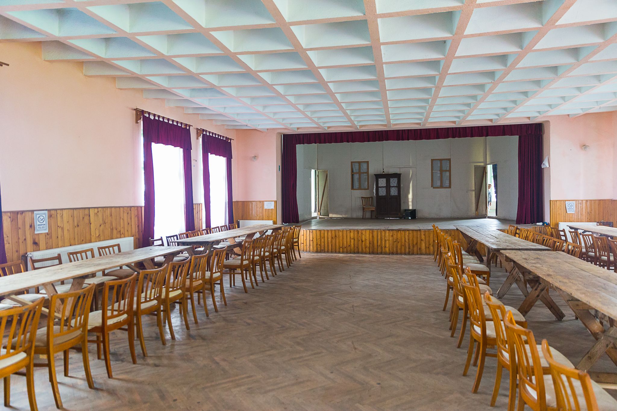 Rezalitele de colț sunt prevăzute cu frontoane în segment de cerc, în care se găsesc ghirlande empire. Între rezalitele de colț, aflate pe fațada posterioară a clădirii, se observă un șir de arcade care susțin un pridvor de lemn.