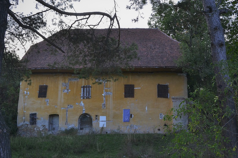 Subsolul poate fi accesat prin partea de est, iar nivelul cu apartamente prin partea de sud și vest a clădirii. Un element interesant al clădirii îl constituie ferestrele înclinate, asemenea unor creneluri, situate pe zidurile groase ale subsolului. Aceste ferestre sugerează existența unor clădiri rezidențiale cu funcție de protecție, existente în sec. XVII. O dată este inscripționată și pe tabla de piatră, care se află pe fațada sudică a clădirii. Conform acesteia, conacul s-a construit în anul 1717, de către Hollkay Jánnos și Szotyori Heléna. Tot o incripție așezată pe frontonul trapezoidal al părții de nord, face referire la faptul că după cutremurul din 1802, soția fiului lui Holkay József, Pávai Vajna Anna a efectuat lucrări de restaurare a clădirii în 1807.