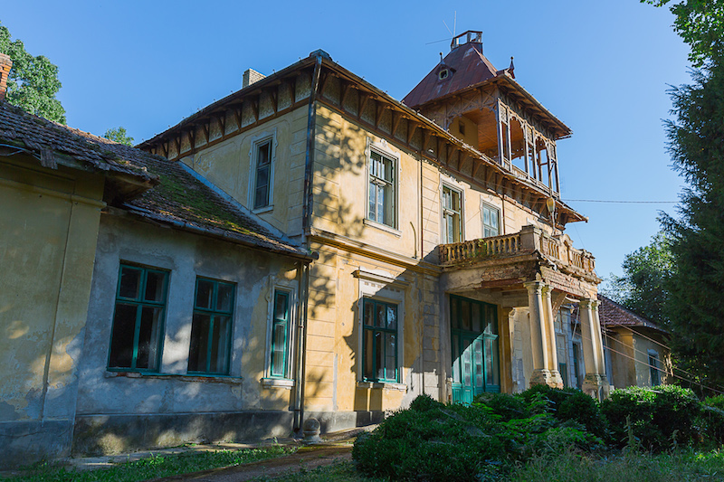 Pilaștri de lângă intrare susțin un pridvor cu elemente din piatră. Ferestrele părții centrale ale clădirii sunt accentuate de lezene striate. Ferestrele sunt cu închidere dreaptă și au chenare cu ornamente. Ferestrele amplasate pe ce cele două părți ale intrării principale dispun de boiandrug și pervaz. Etajul este accentuat de ferestre, prevăzute tot cu chenare. Sub cornișă se extind motive florale, aranjate într-un singur șir. La etaj, în partea dreptă s-a mai construit un turn, care la exterior este înconjurat de un coridor deschis, cu balustradă ornată din traforaj, și de un șir de arcade. Fațada posterioară este accentuată de două rezalite la margini și un rezalit central.