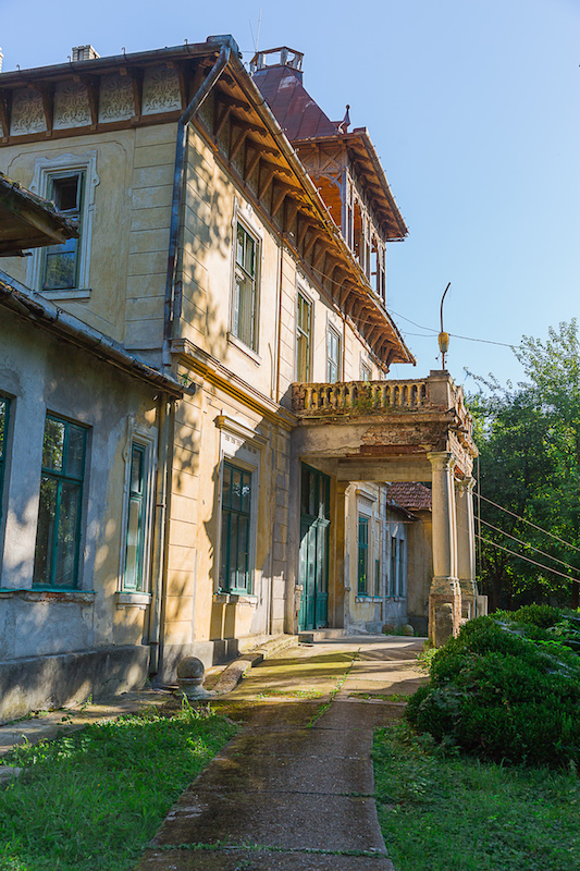 În fața intrării care conține scările care duc la etaj, se află un portic, al cărui stâlpi duble, dorice și pilaștri susțin un pridvor cu elemente de piatră. Ușa principală este cu închidere dreaptă, partea superioară conținând un grilaj frumos din fier forjat. Etajul are șase axe. Cele două fațade se deschid într-un foaier cu ornamente tip meandre, care este despărțită de un hol cu ornamente similare. Această despărțire face ca nivelul inferior să aibă două compartimente. Chenarele de ușă, cu ornamente deosebite, decorațiunile de majorică a sălilor, oferă eleganța încăperilor interioare. Etajul este deasemenea pe două compartimente. Fațada anexă din partea stângă are trei axe, în mijlocul acesteia aflându-se intrarea. La partea dreaptă a clădirii se anexează o filegorie sau un chioșc, cu ornamente din traforaj.