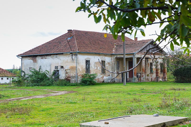 Fațada principală a clădirii cu forma în plan dreptunghiulară conține o poartă mare de acces carosabil, al cărui timpanon este susținut de patru stâlpi cu capitel toscan și bază. Ușa principală este flancată de câte trei pilaștri cu capitel.Pe fiecare parte, între ultimii doi pilaștri, se află câte o fereastră cu închidere dreaptă. Intrarea principală poate fi accesată cu ajutorul unei scări, pe a cărei două laturi se află uși care duc spre subsol. Pe fațada principală, porticul este flancat de câte două ferestre cu chenare și cu pervaz, iar pe fațada posterioară se observă o terasă, care poate fi accesată printr-o scară. Timpanonul acesteia este susținută de câte un pilastru, iar la centru, de un stâlp cu capitel și bază. Ferestrele sunt cu închidere dreaptă, iar pe terasă, deasupra golurilor de uși, se observă câte o fereastră oarbă. Clădirea conține o sală de mese, o sală mare decorată cu meandră, respectiv pe fiecare parte se observă camere mai mici sau mai mari. Conacului îi aparține și un grânar, care se află într-o stare bună.